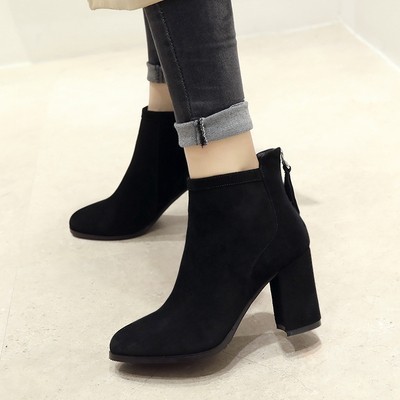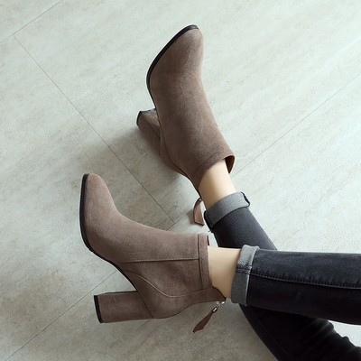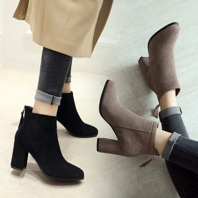 欧洲站短靴女2020秋冬新款韩版百搭高跟鞋女靴真皮网红马丁靴加绒